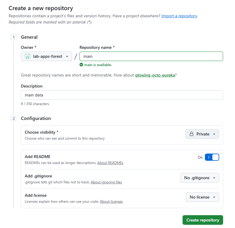 .gitignoreは後から必要があれば追加、非公開のためLICENSEは不要なため、今回はREADMEだけ作りました。