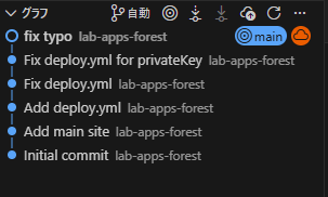 コミットが成功するとソース管理のグラフ欄にコミット履歴が表示されて、それぞれのコミットを見ることで、何の修正の時に何のファイルの何処が修正されたのかを見ることが出来る。