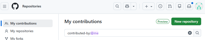 変更後の画面の右上にある「New repository」ボタンをクリック。