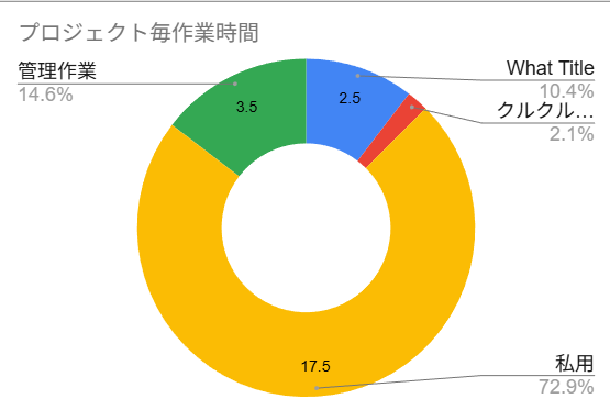 作業時間の割合をプロジェクト毎にまとめて円グラフにしてみました。