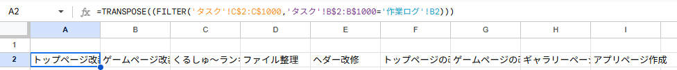 まず最初に、ワーク用のシートを作成して、そこに作業ログのプロジェクトに紐づく