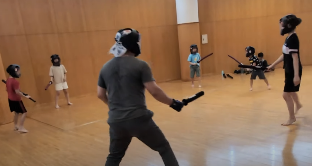 子ども達は長剣を使った打ち込み稽古を行いました。