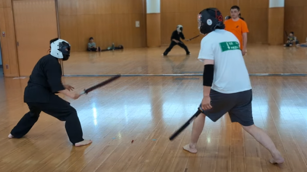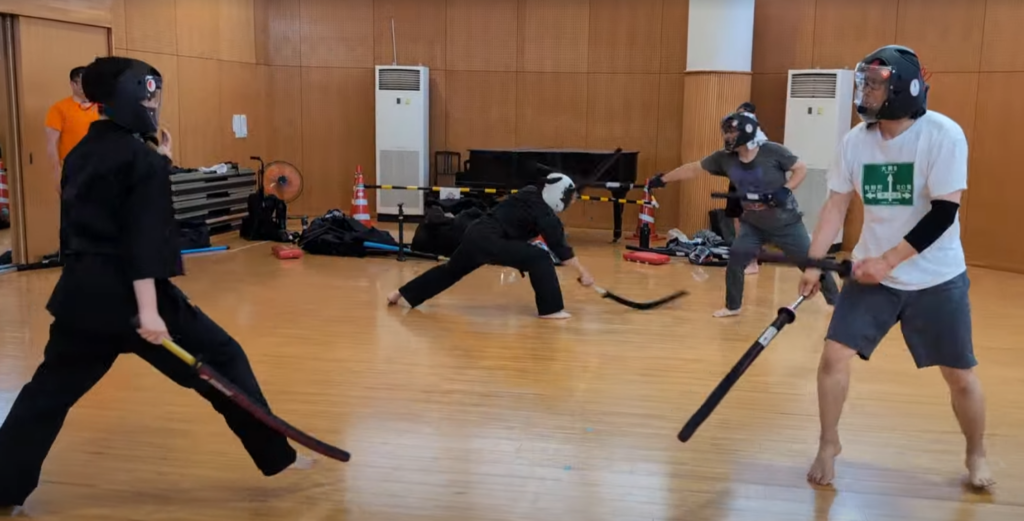 縦面、左横面、右横面、足をそれぞれ体を伸ばしながら剣先で打てるよう練習しました。
