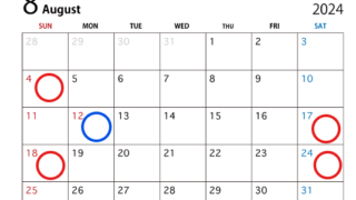 2024年08月の予定です。08/04(日) 夏休み体験 10:00~12:00 東山公民館08/12(月) 高砂市スポーツチャンバラ選手権大会08/17(土) 通常練習 10:00~12:00 東山公民館実技室08/18(日) 通常練習 ...