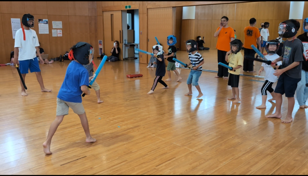体験の子ども達が多かったので最初の気を付け、礼、構え刀の一連の流れと面打ちの練習のみを
