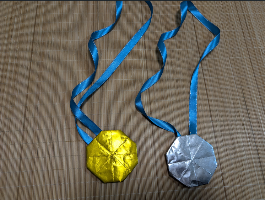 先生手作りの金メダルと銀メダル。喜んでもらえて良かったです。