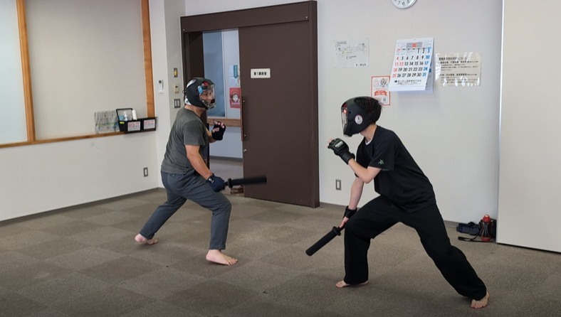 受ける動作と打つ動作が咄嗟にできるようにすることを意識しながら行います。