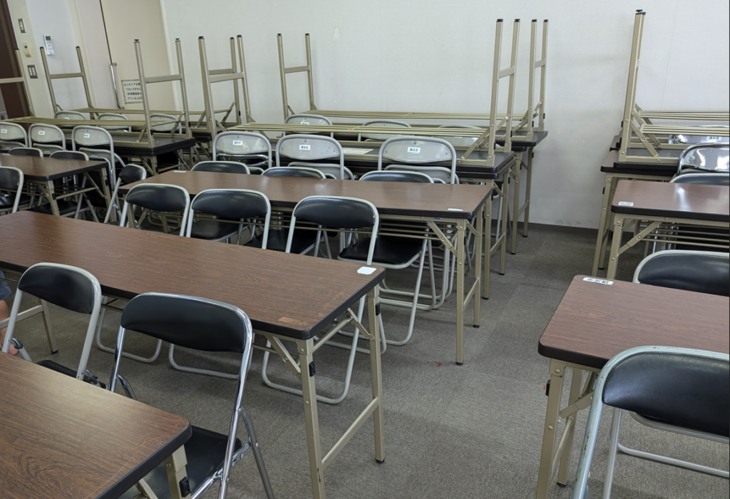 今回は机を2列分程重ねて移動させたので、それなりの広さを確保できました。