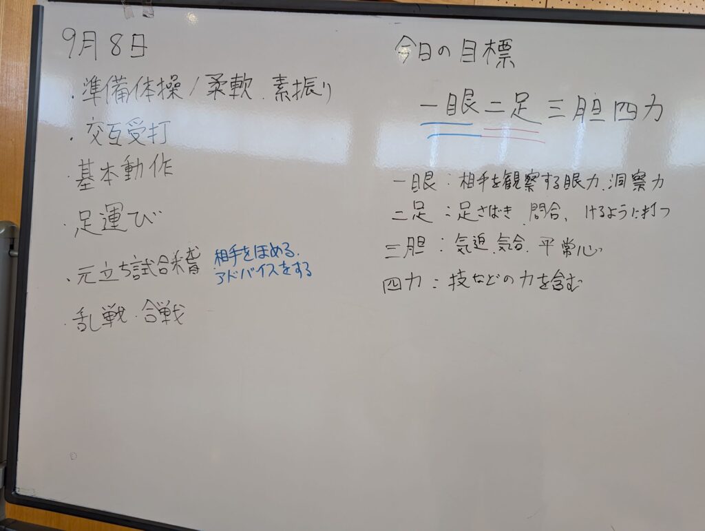 今回は練習予定や目標をホワイトボードに書いてみました。