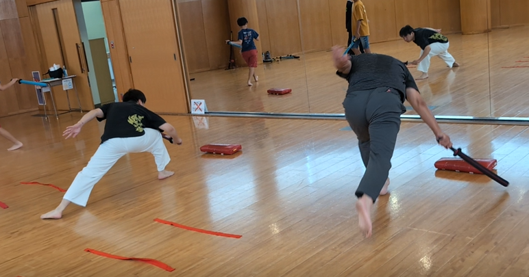 休み時間中に大人の試合稽古。最近は短刀の練習が多いです。