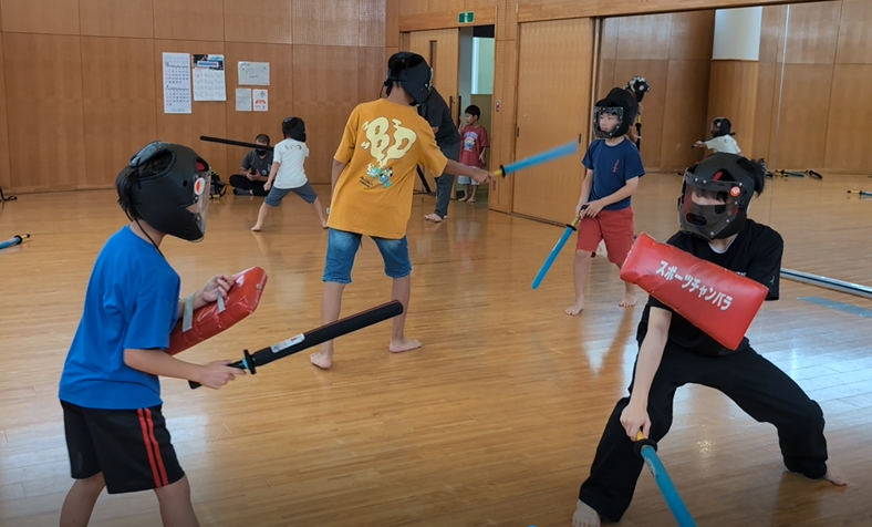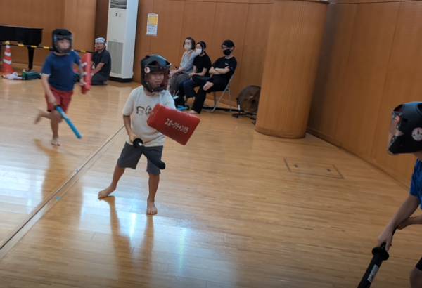 全員敵の乱戦と、子どもチーム対大人個人戦を行いました。