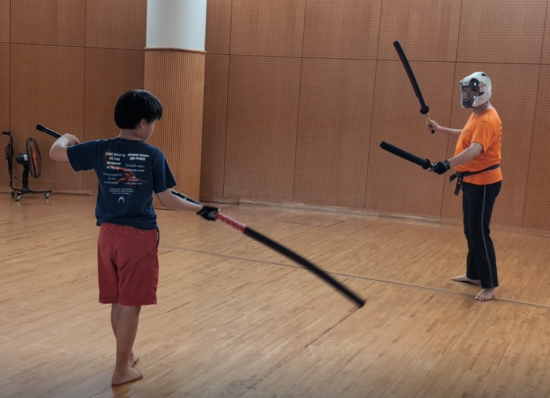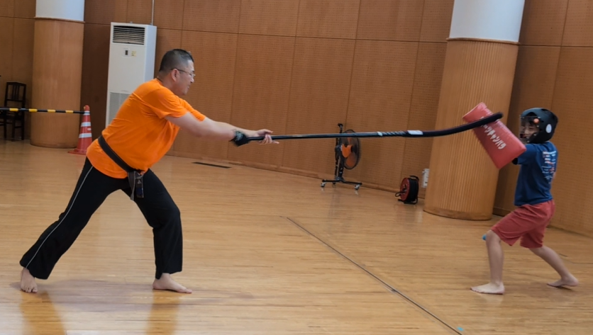 楯小太刀相手に肩を狙って突く練習。残念ながら防がれてしまった。