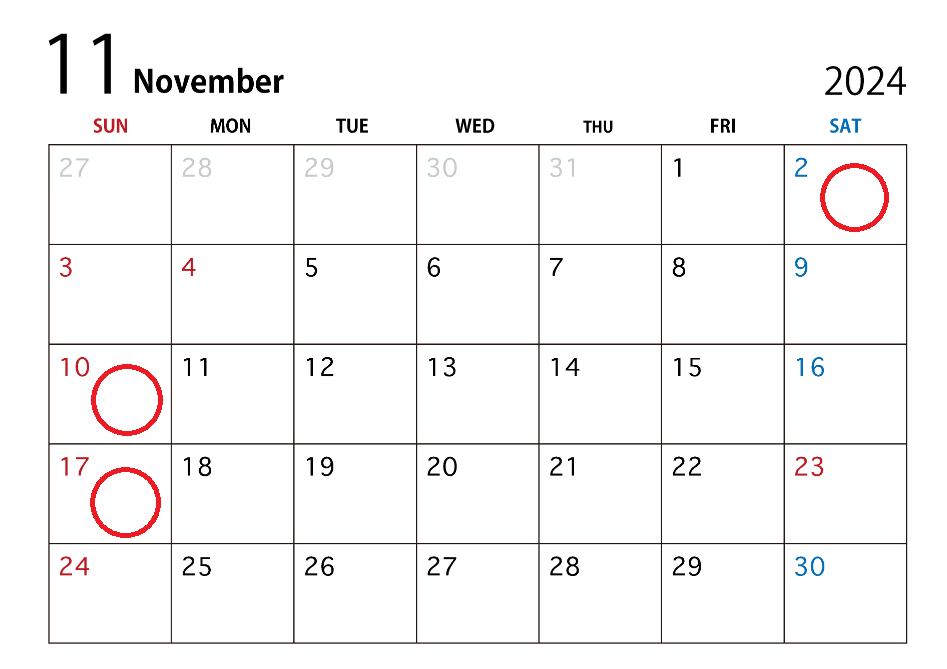 11/17(日) 通常練習 10:00~12:0013:00~15:00 東山公民館実技室